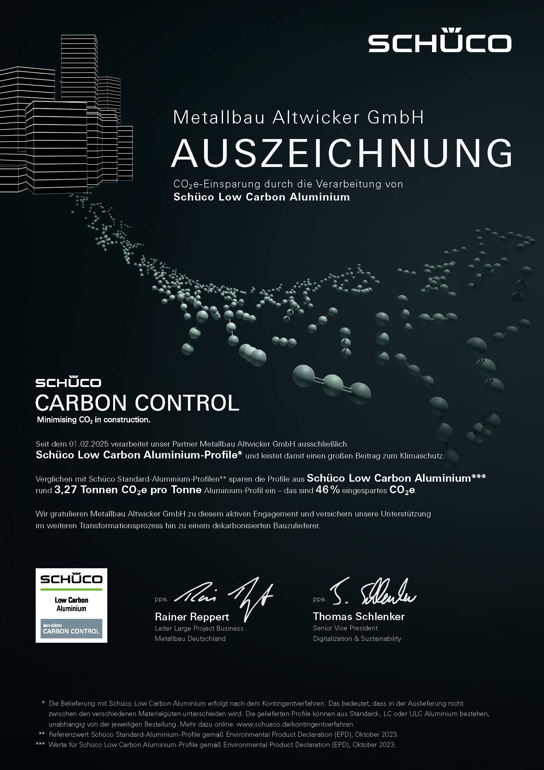 Wir gratulieren Metallbau Altwicker GmbH zu diesem aktiven Engagement und versichern unsere Unterstützung